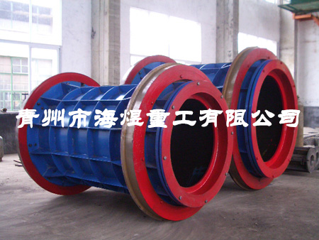 900×2000排水管模具是符合JC/T613混凝土和鋼筋混凝土排水管鋼模標準的離心管模,模具組裝后合口處沿徑向的開口寬度比筒體實際直徑大2~4mm,并圓滑過渡,筒體合縫間隙不大于0.5mm,筒體內(nèi)壁合縫錯位不大于1mm。