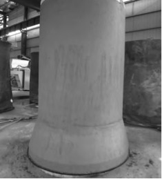 (1)主要原因:所購置芯模振動(dòng)設(shè)備在生產(chǎn)(Φ1000~Φ1200)mm×2500mm承插口管時(shí),承插口凸出段在脫模后易出現(xiàn)管體塌落現(xiàn)象,主要原因是這種管型所用骨架為單層骨架,承口段成型后混凝土用量過多、鋼筋少、結(jié)構(gòu)尺寸突變導(dǎo)致混凝土因自重過大而塌落。 (2)改進(jìn)措施:①對(duì)小口徑承插管所用骨架的承插段采用雙層骨架,適當(dāng)增加承插段骨架鋼筋與混凝土物料的接觸面積,從而提高該處鋼筋與混凝土的結(jié)合力;②脫內(nèi)、外模時(shí),必須保證行車吊具的垂直中心線與模具的垂直中心線重合。 (3)改進(jìn)效果:通過對(duì)小口徑承插管承口段骨架加強(qiáng)處理,在隨后的小口徑承插管生產(chǎn)、成型脫模后再未出現(xiàn)承口段混凝土塌落的現(xiàn)象;同時(shí)通過及時(shí)對(duì)承口段凸出部分外表面進(jìn)行抹面修飾,使得小口徑承插管外觀質(zhì)量非常完美(見圖3)。 ![]() 圖3 改進(jìn)后小口徑承插管外觀情況